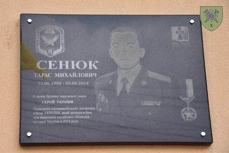 Вчора у Коломиї відкрили меморіальну дошку Герою України, нашому земляку, полковнику ДШВ Сенюку Тарасу Михайловичу, який загинув від кулі снайпера 3 червня 2014 року під Слов’янськом.