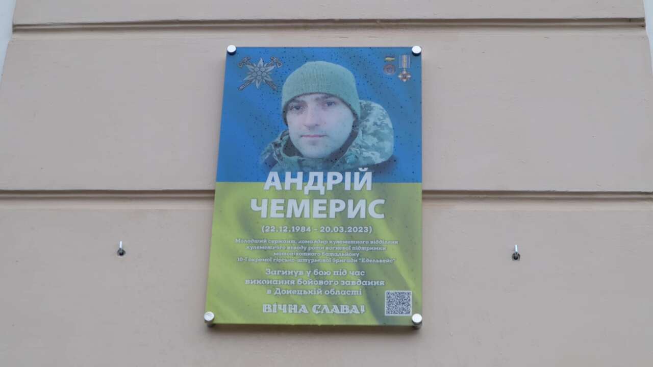 22 грудня на фасаді ліцею №1 імені Василя Стефаника відкрили пам’ятну дошку командиру кулеметного відділення 10-ї гірсько-штурмової бригади «Едельвейс» Андрієві Чемерису, повідомив міський голова Богдан Станіславський.