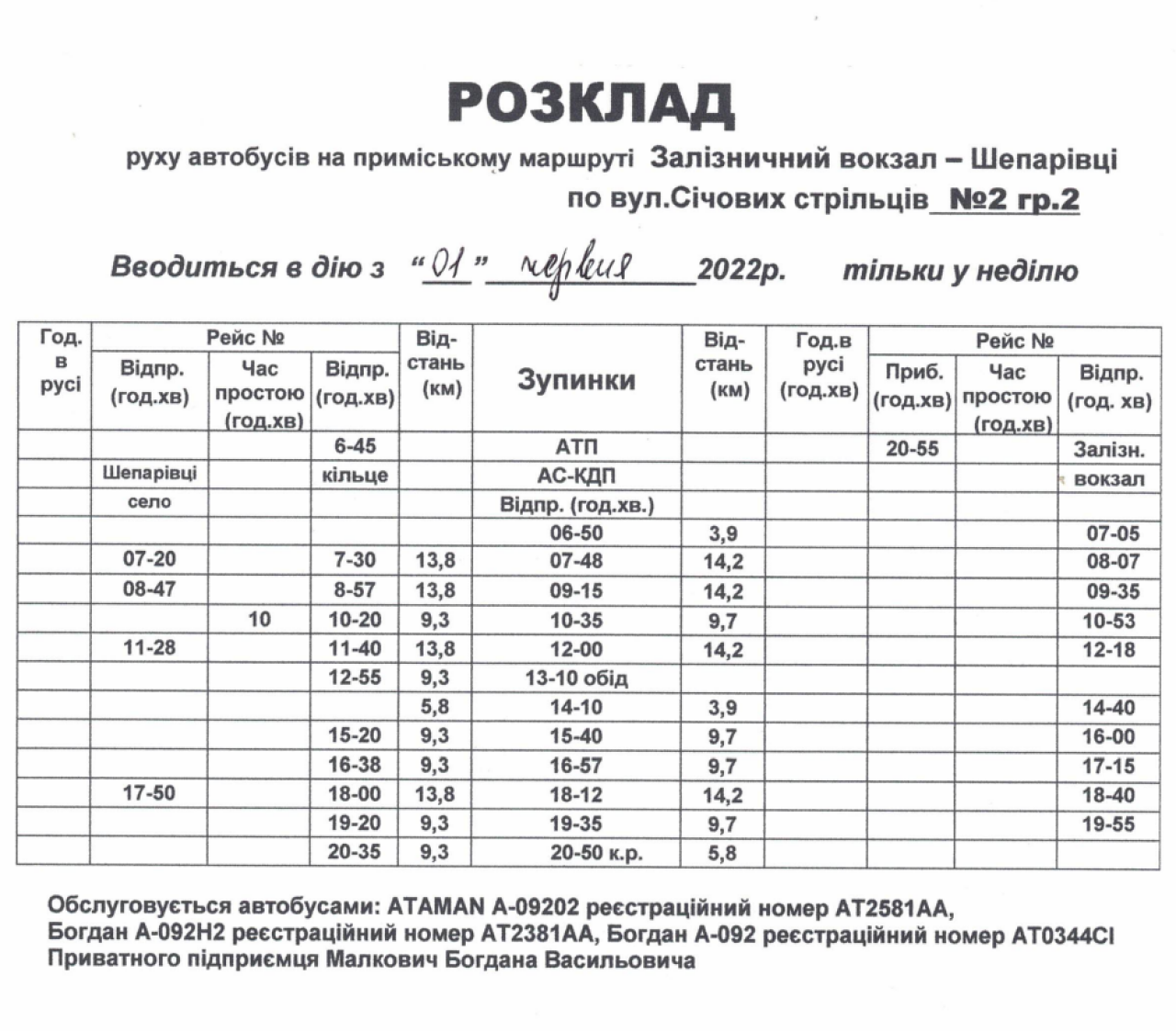 У Коломиї внесено зміни у маршрут автобуса №2. РОЗКЛАД