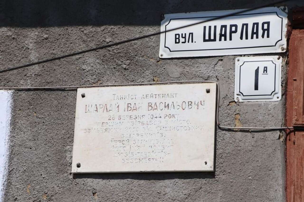 - Пам'ятну дошку радянському танкісту Івану Шарлаю;