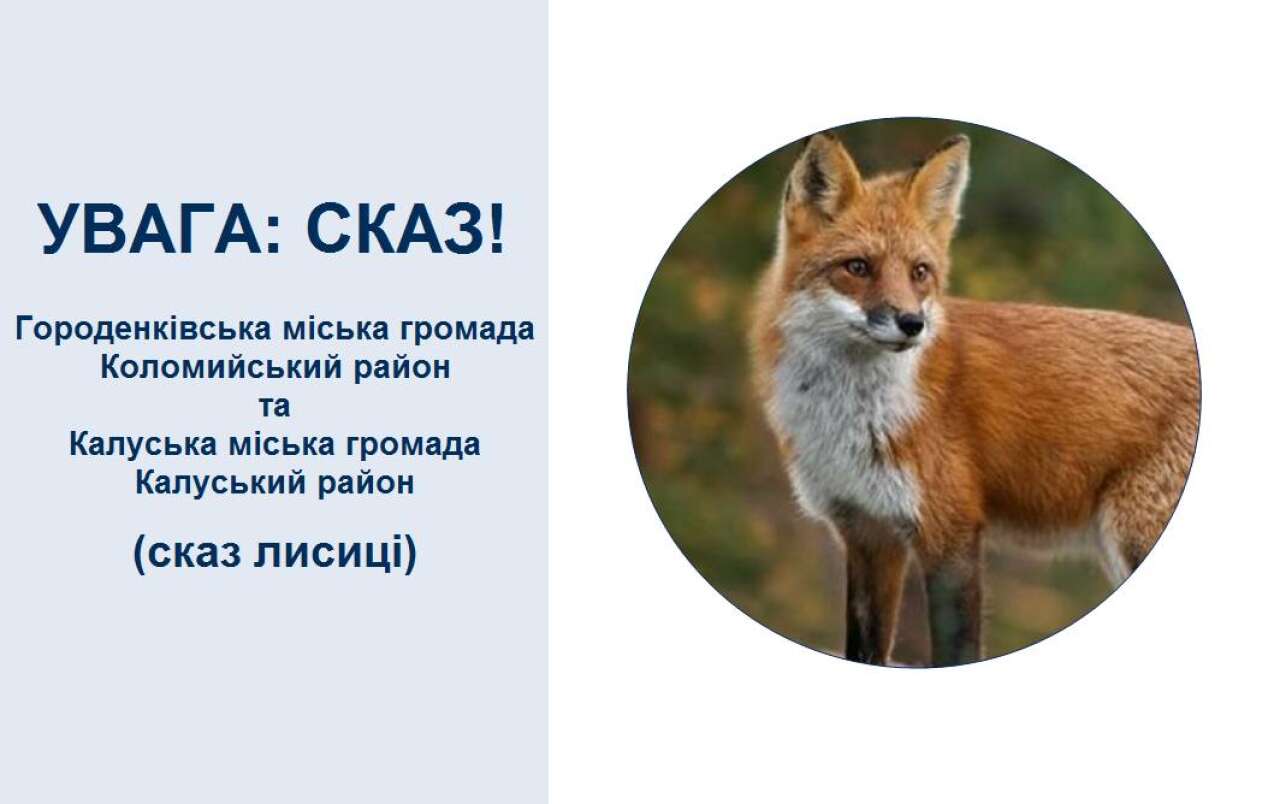 На території Городенківської міської громади Коломийського району та Калуської міської громади Калуського району Івано-Франківської області встановлено сказ лисиць.