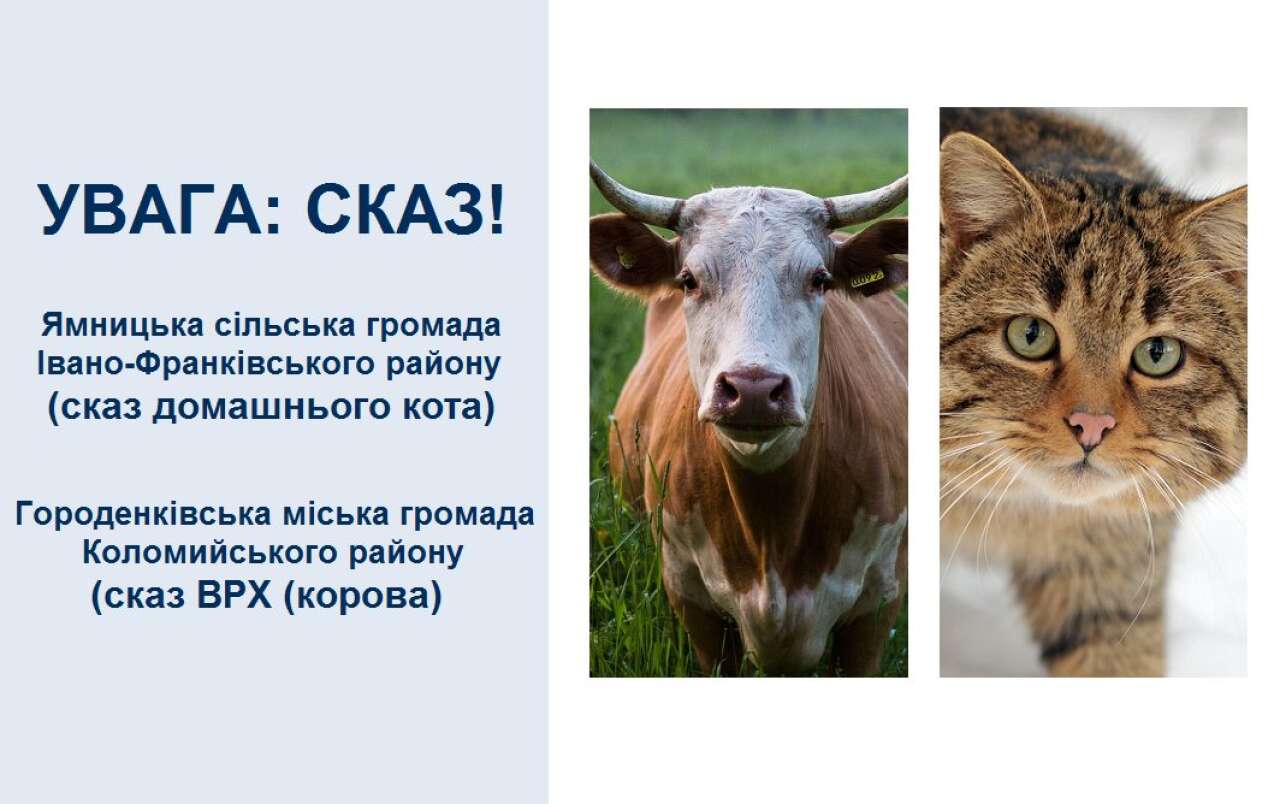 Івано-Франківською регіональною державною лабораторією Держпродспоживслужби встановлено сказ домашнього кота в населеному пункті Ямницької сільської громади Івано-Франківського району Івано-Франківської області.