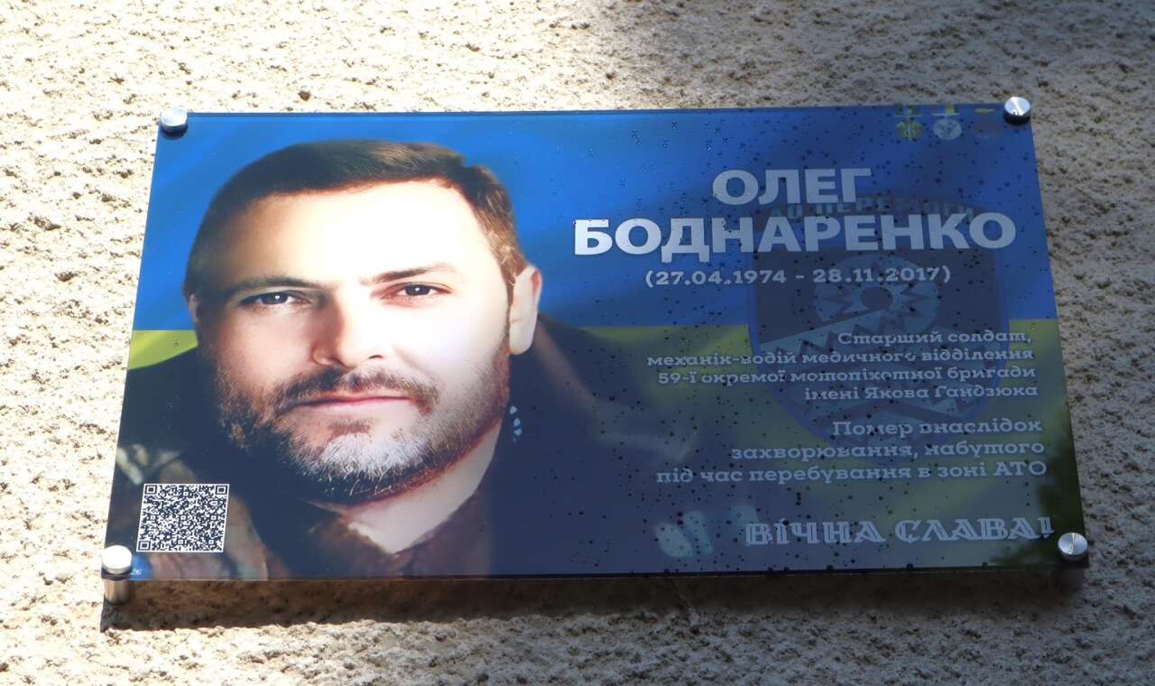 Олег Боднаренко – механік-водій медичного відділення 59-ї окремої мотопіхотної бригади імені Якова Гандзюка. Був активним учасником Революції Гідності, у 2015 році мобілізувався до лав Збройних сил України. Брав участь у боях на першій лінії вогню, а також вивозив поранених захисників. 28 листопада 2017 року помер внаслідок хвороби, набутої під час перебування в зоні АТО.