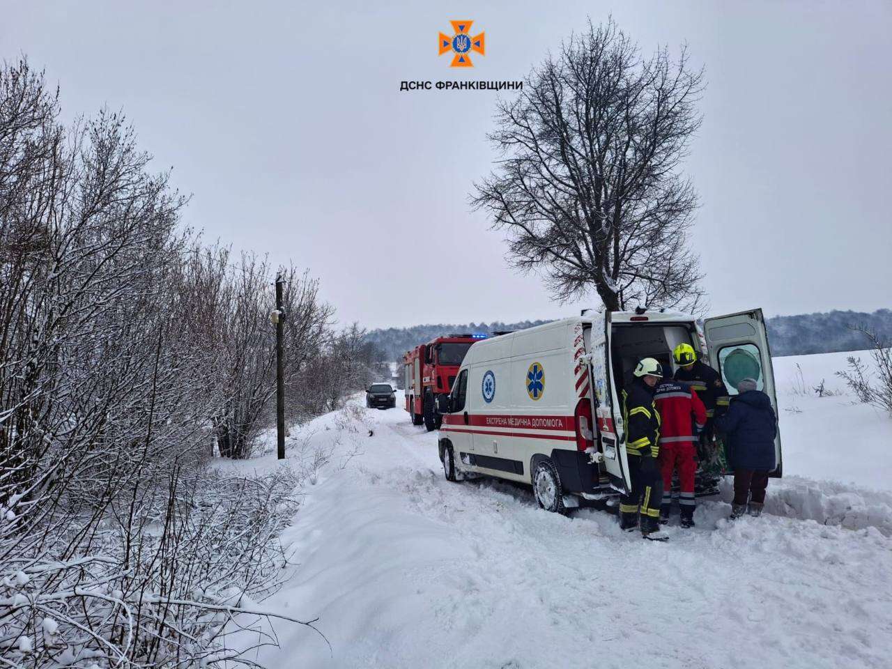 7 січня о 10:33 до Служби порятунку надійшло повідомлення про те, що в селі Любша Рогатинської територіальної громади автомобіль екстреної медичної допомоги застряг під час слідування на виклик.