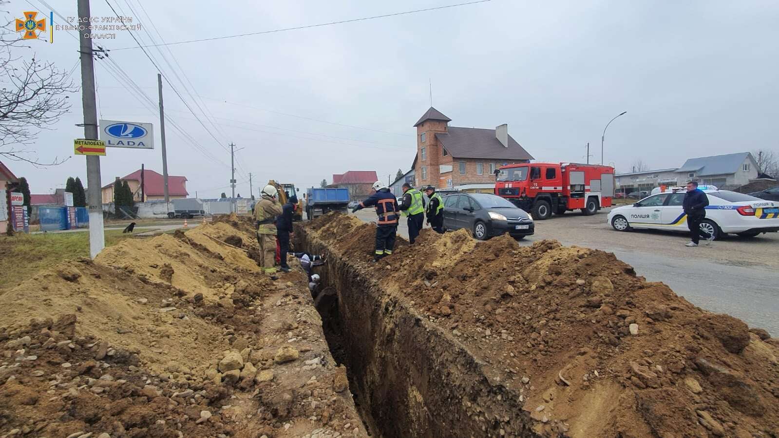 16 листопада о 13:58 до служби 101 надійшло повідомлення про те, у Снятині Коломийського району під час проведення робіт у траншеї відбувся зсув щебеню з ґрунтом, внаслідок чого було засипано чоловіка.