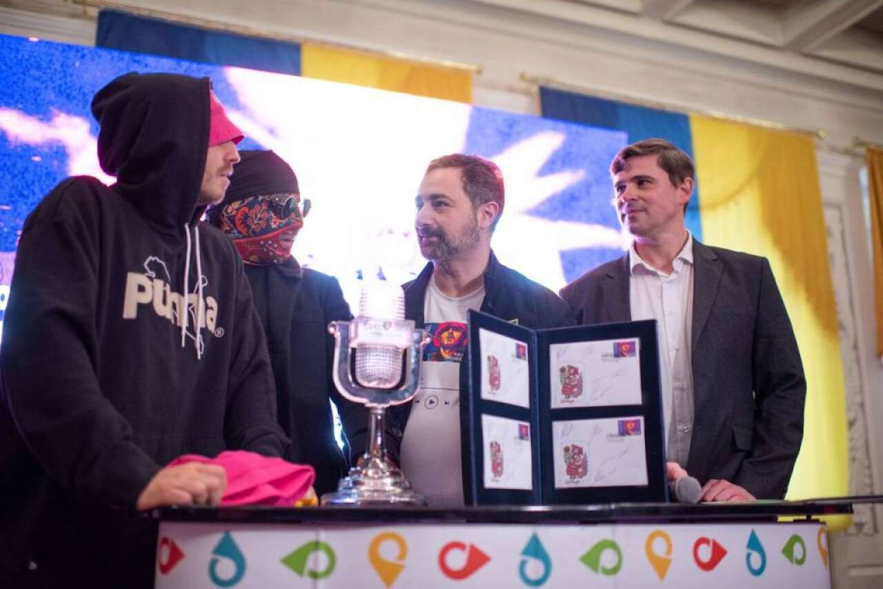 Під час офіційної презентації нової поштової марки від Укрпошти в палаці культури «Мінерал», учасники гурту Kalush Orchestra презентували копію переможного кубку «Євробачення-2022», яку надіслали організатори конкурсу, дізнавшись, що артисти продали оригінал на благодійному аукціоні для збору коштів на підтримку ЗСУ.