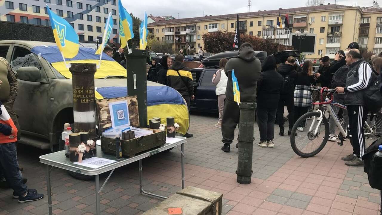 Під час благодійної акції волонтери продавали трофеї, які їм передали воїни під час однієї з поїздок. Деякі з тубусів розмалювали та всередину помістили приємний сюрприз, каже Софія Калабайда. Станом на 14:00 благодійники вторгували приблизно 10 тис. грн.