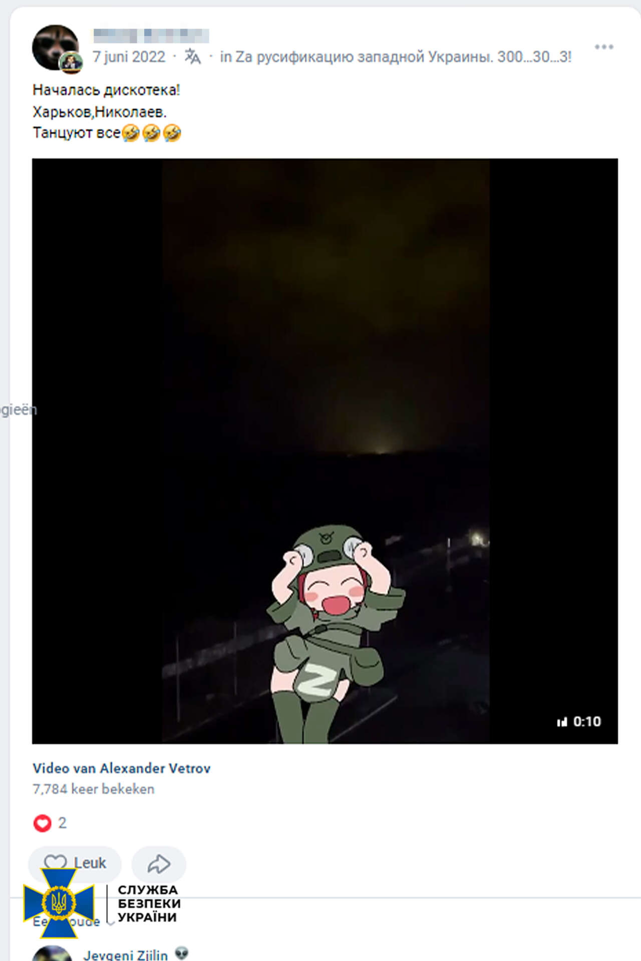 У цій спільноті він поширював російську дезінформацію про події на фронті, а також прославляв вище військово-політичне керівництво країни-агресора.