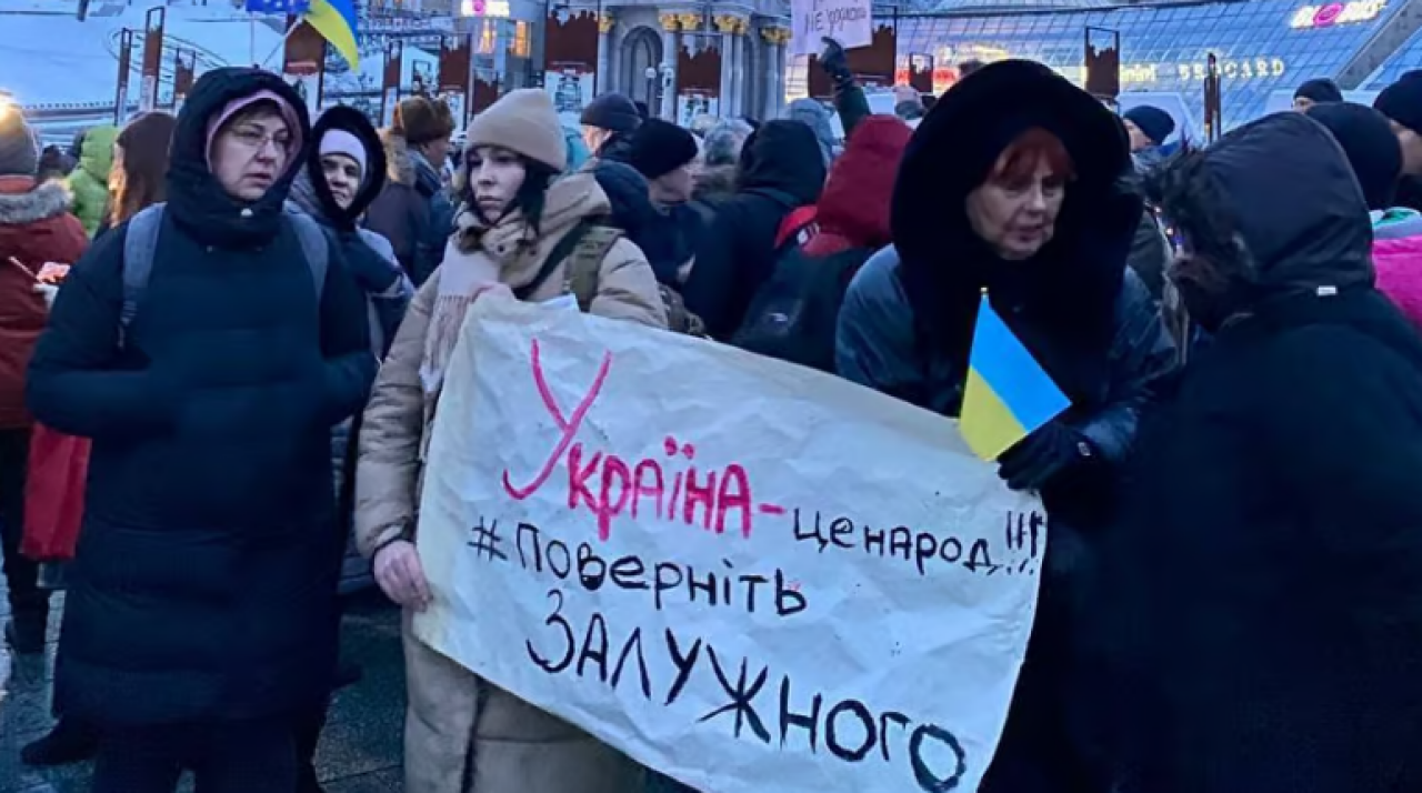 Люди на Майдані Незалежності в Києві вимагають, щоб Валерій Залужний повернувся на посаду Головнокомандувача Збройних Сил України. Лунають заклики" Поверніть Залужного"!
