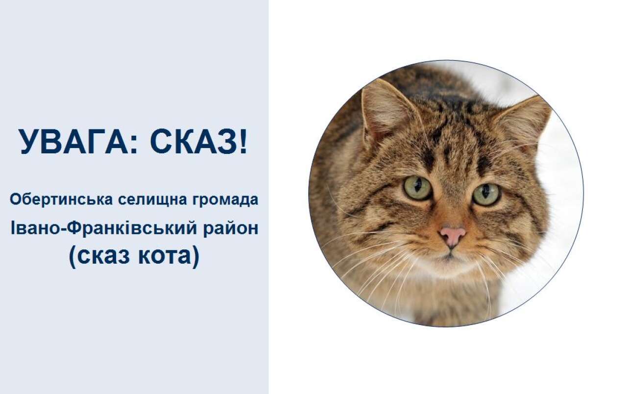 Івано-Франківською регіональною державною лабораторією Держпродспоживслужби в Івано-Франківській області встановлено сказ кота, який належав громадянину одного із сіл Обертинської селищної громади Івано-Франківського району Івано-Франківської області.