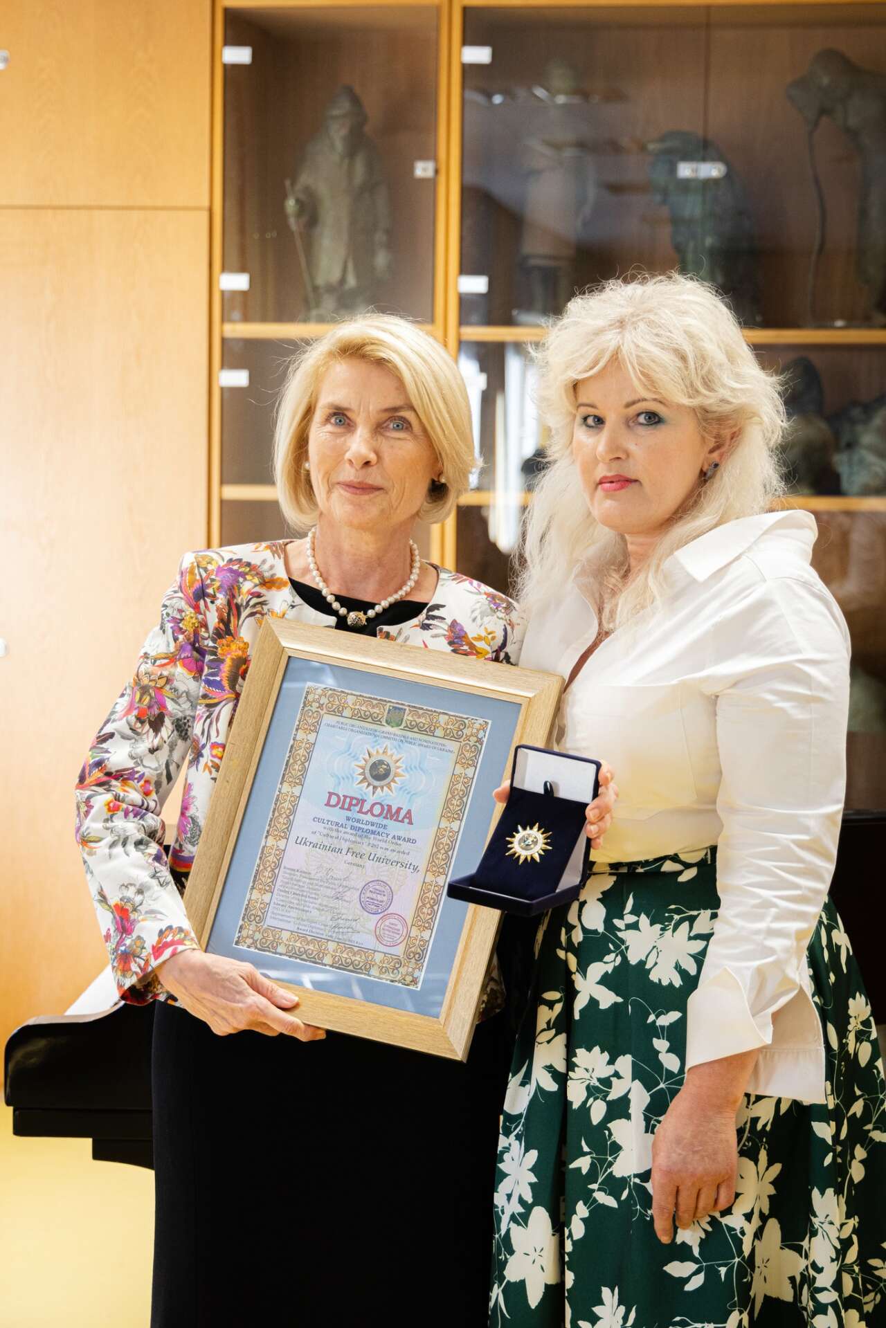 Приємною несподіванкою для гостей вечора стало нагородження УВУ та її ректорки, професорки Марії Пришляк особисто за високі професійні досягнення у галузі культурної дипломатії та вагомий внесок у розвиток Університету шляхом діалогу, співпраці і взаєморозуміння на міжнародній арені — Всесвітнім Орденом Золотої Зірки у галузі культурної дипломатії. Український Вільний Університет разом з орденом отримав Диплом «За зміцнення міжнародного авторитету України, гармонійні відносини між народами шляхом діалогу, співпраці та взаєморозуміння, просування культурних обмінів через мистецтво, музику та інші культурні прояви у системі вищої освіти. Відкриваючи концерт, ректорка УВУ професорка