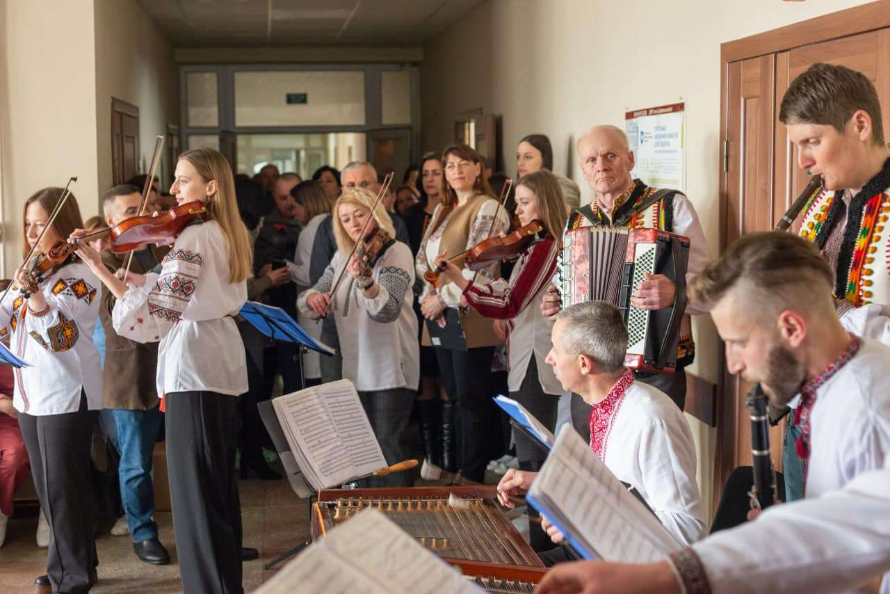 Захід організовано Управлінням культури та туризму Коломийської міської ради для поранених військовослужбовців, які проходять тут лікування, аби підбадьорити їх музикою та співом.