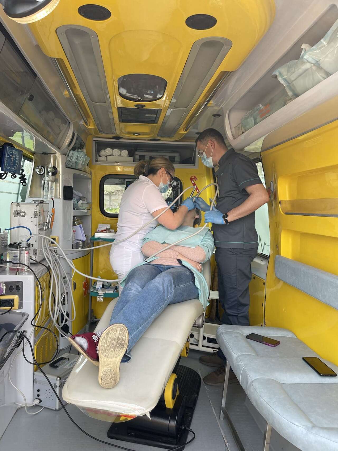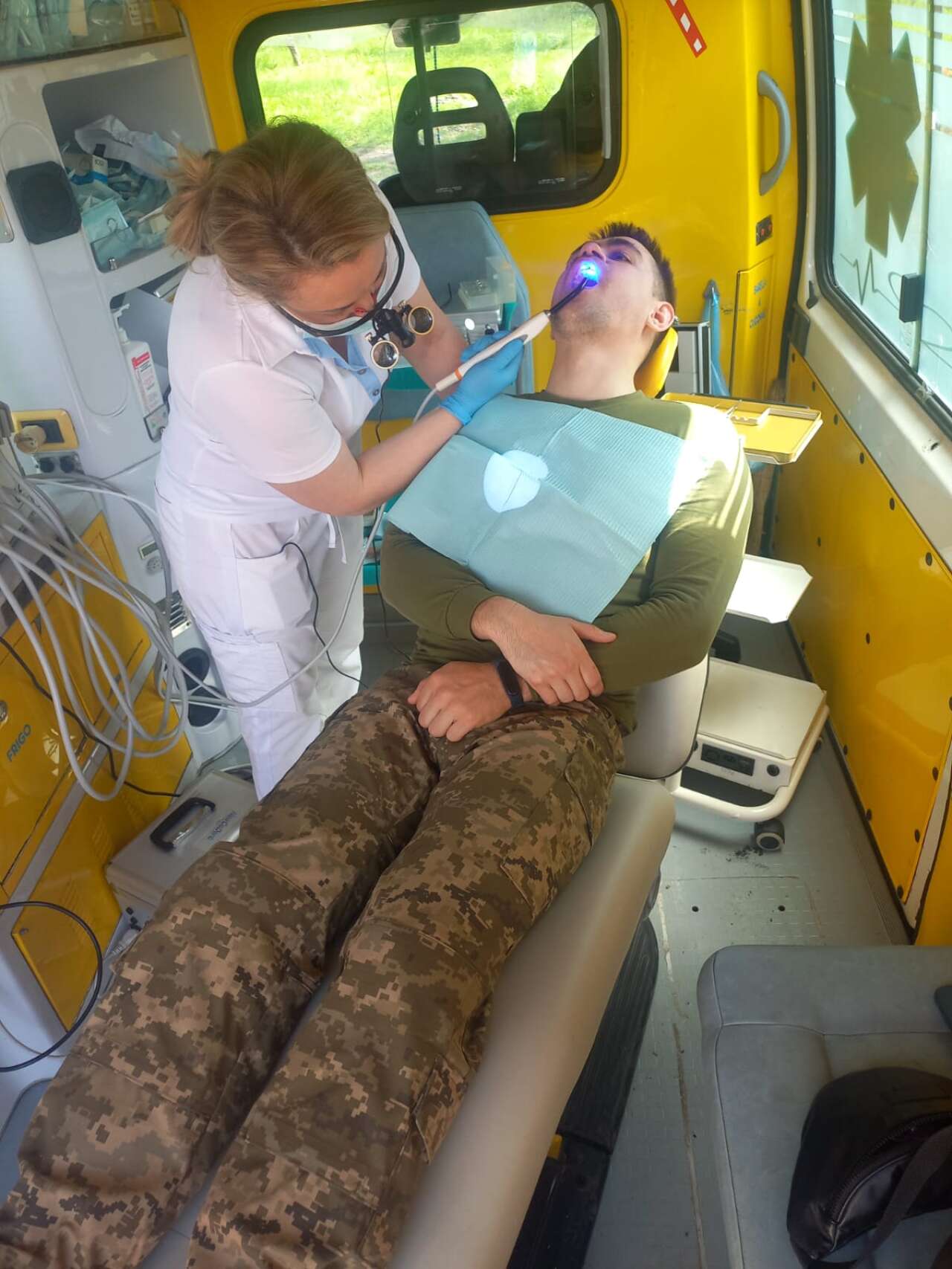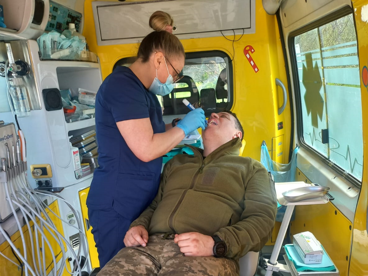 – Ми проводимо лікування у гостробольових випадках, видаляємо та лікуємо зуби, ставимо пломби, надаємо хірургічну та терапевтичну допомогу, а також консультуємо та скеровуємо, за потреби, на дообстеження, – продовжує Ірина. – У машині є дантистське крісло, компресор та інше необхідне обладнання для проведення різноманітних стоматологічних процедур. Все воно компактне, займає мало місця та дозволяє максимально швидко і якісно проводити ті чи інші маніпуляції.