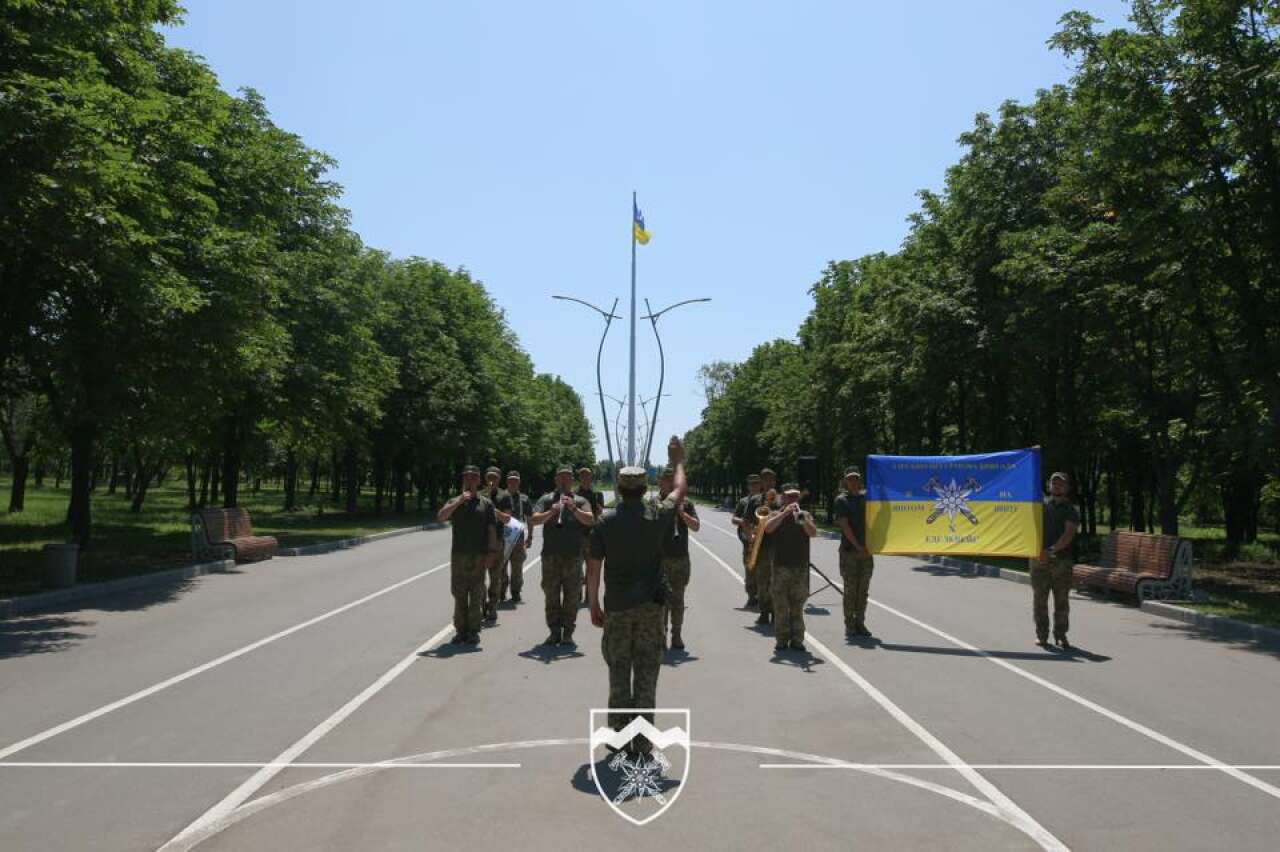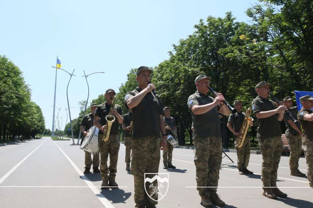 Сьогодні біля найбільшого прапору в Донецькій області, що знаходиться в Краматорську, військовий оркестр «Едельвейс» урочисто зіграв гімн України.