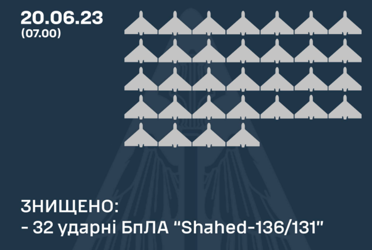 У ніч на 20 червня 2023 року противник завдав удару іранськими баражуючими боєприпасами «Shahed-136/131» по військових та інфраструктурних об’єктах України.