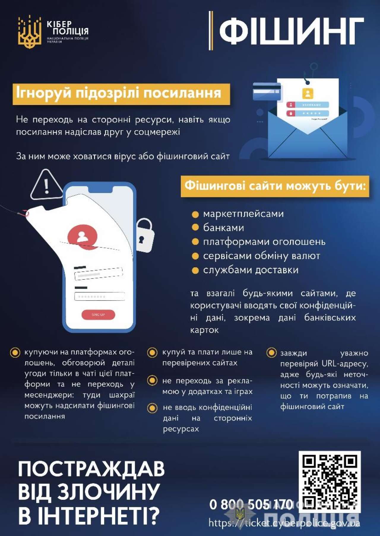 Одним із найпоширеніших видів шахрайства в інтернеті є фішинг. За допомогою фішингових ресурсів шахраї отримують, зокрема, дані банківських карток. Такі відомості вони можуть використати для привласнення грошей або продавати дані іншим шахраям.