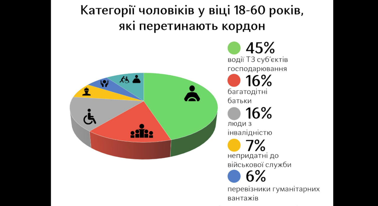 У графіку нижче ми проаналізували, які категорії чоловіків у віці 18-60 років перетинають український кордон найчастіше.