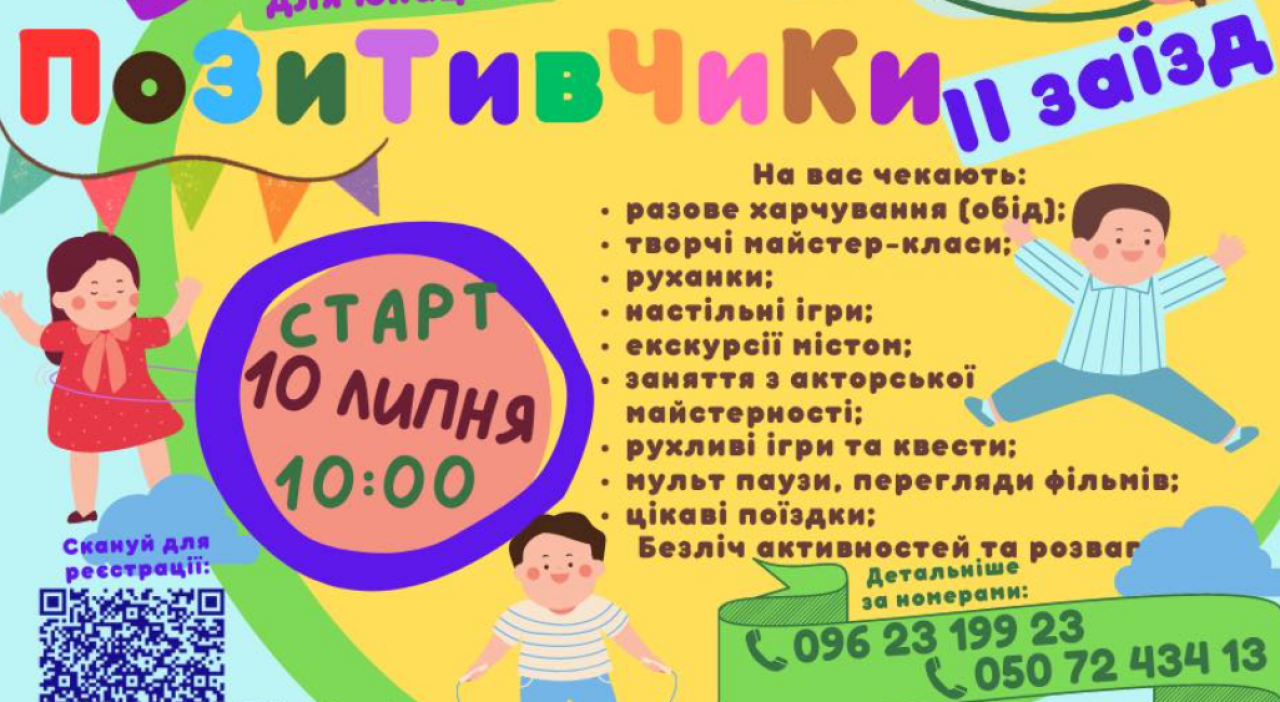 Табір "Позитивчики" - це табір активного відпочинку, який подарує дітям яскраві емоції, відкриття, розвиток талантів.