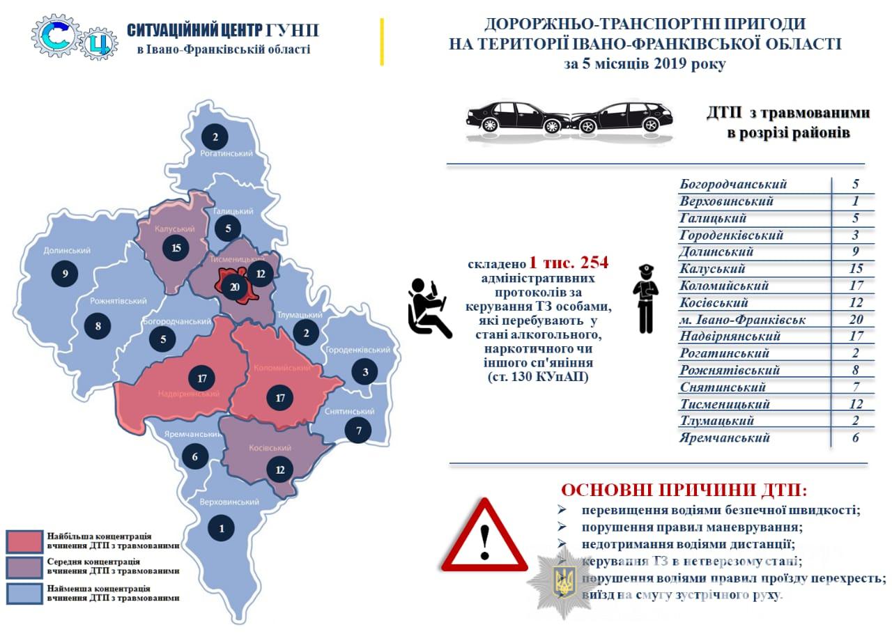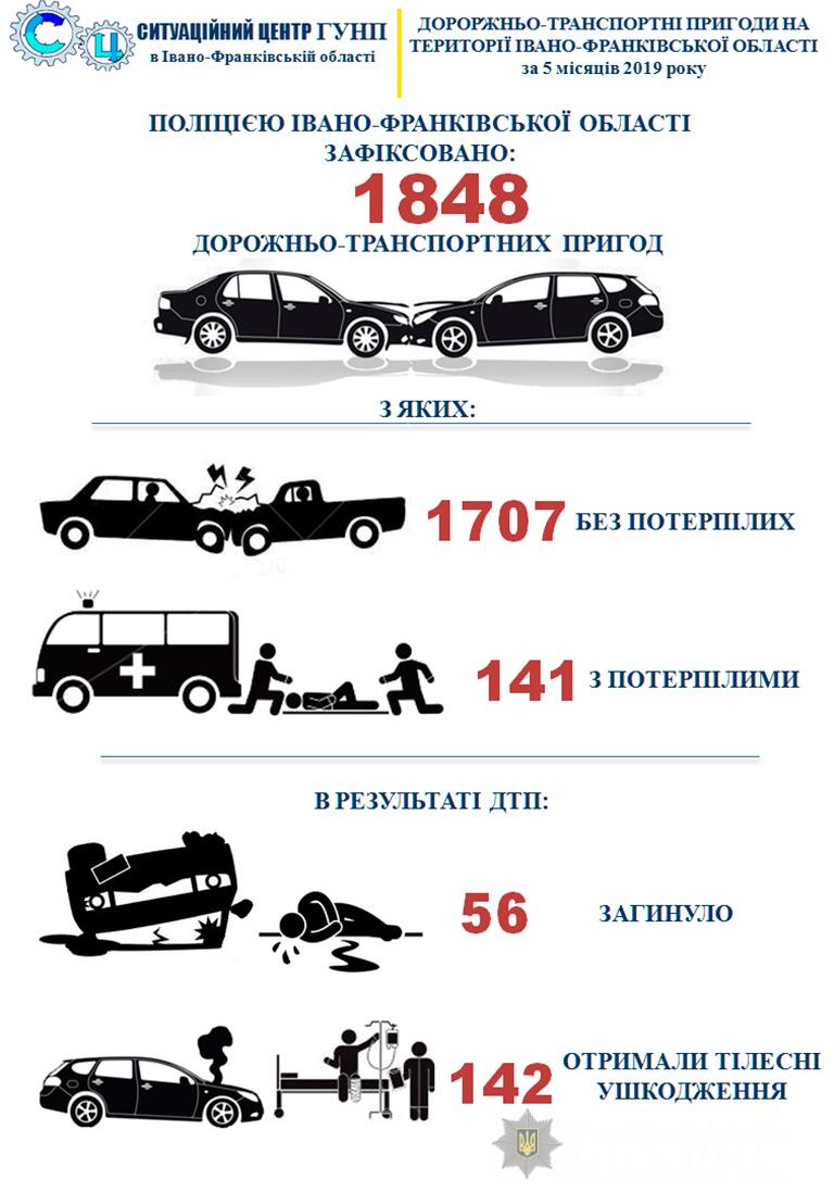 Поліція Прикарпаття оприлюднила інформацію про дорожньо-транспортні пригоди на території області за 5 місяців цього року.