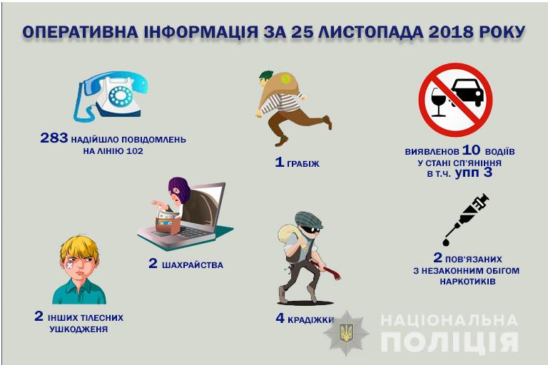За минулу добу на лінію "102" надійшло 283 повідомлень.