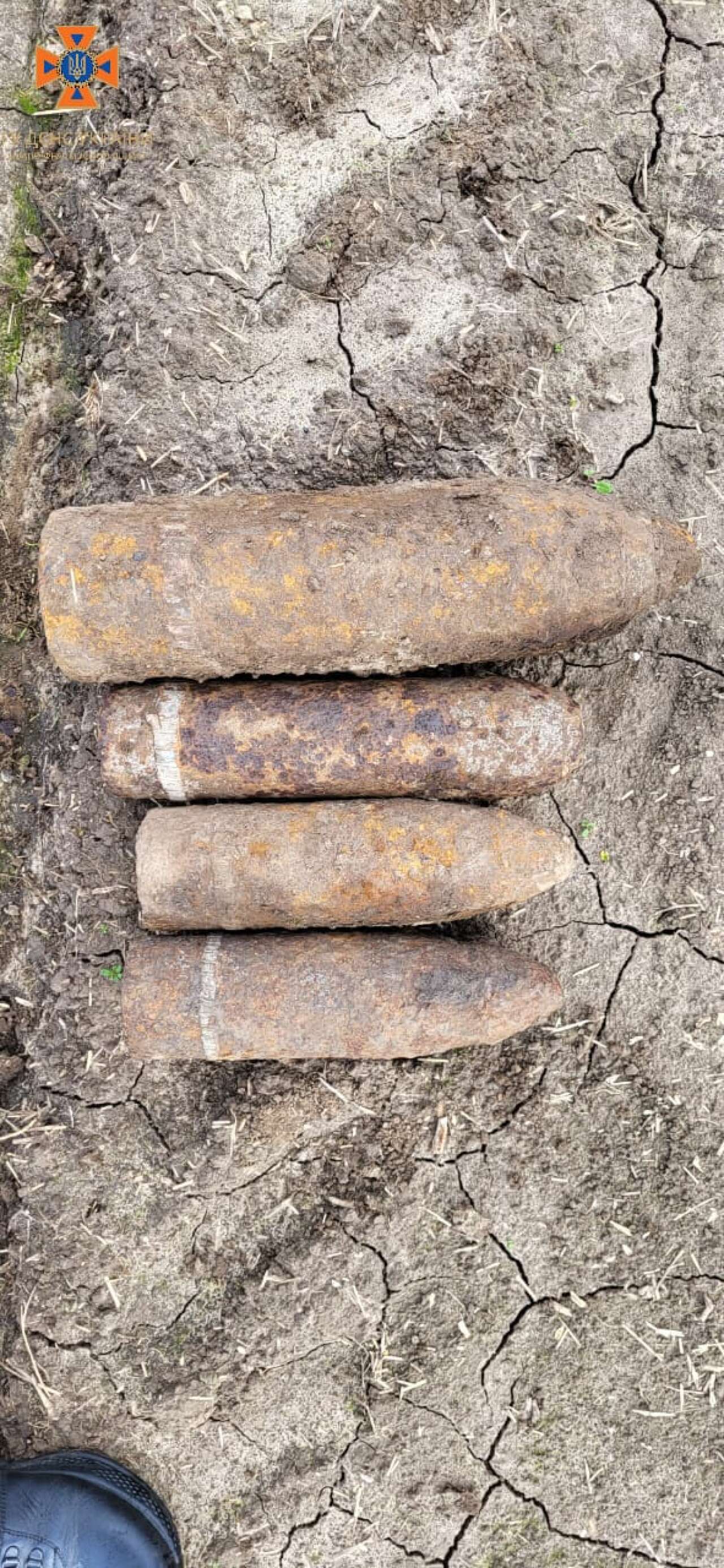 4 артилерійські снаряди часів ІІ Світової війни, виявлені на відкритій території поля в селі Нові Скоморохи Івано-Франківський району;