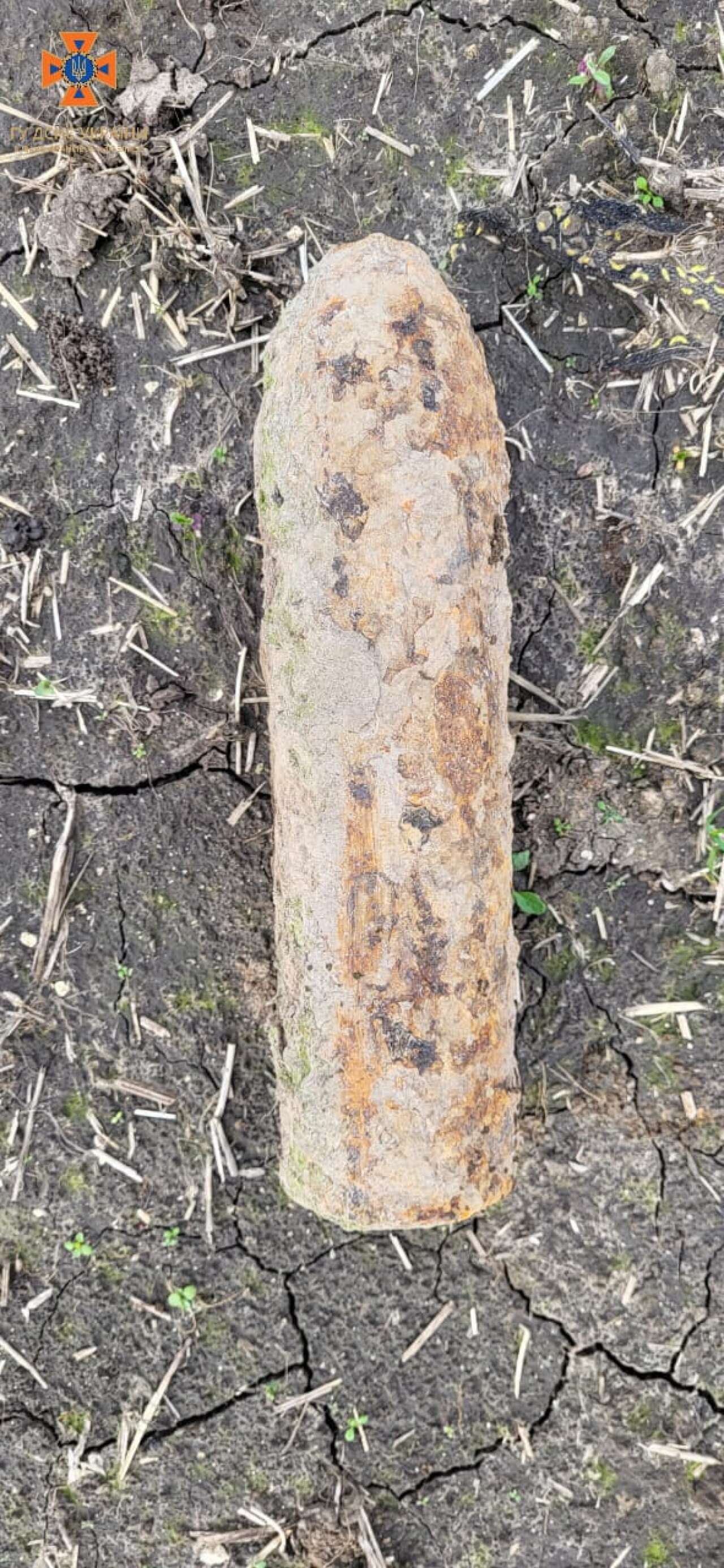 1 артилерійський снаряд часів ІІ Світової війни, виявлений на відкритій території поля в селі Комарів Івано-Франківський району;