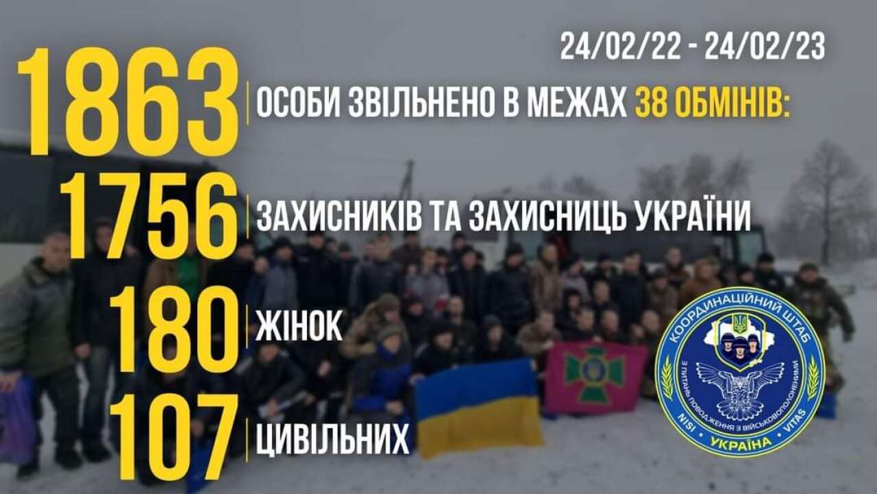 Упродовж року повномасштабного вторгнення Координаційному штабу з питань поводження з військовополоненими вдалося провести 38 обмінів.