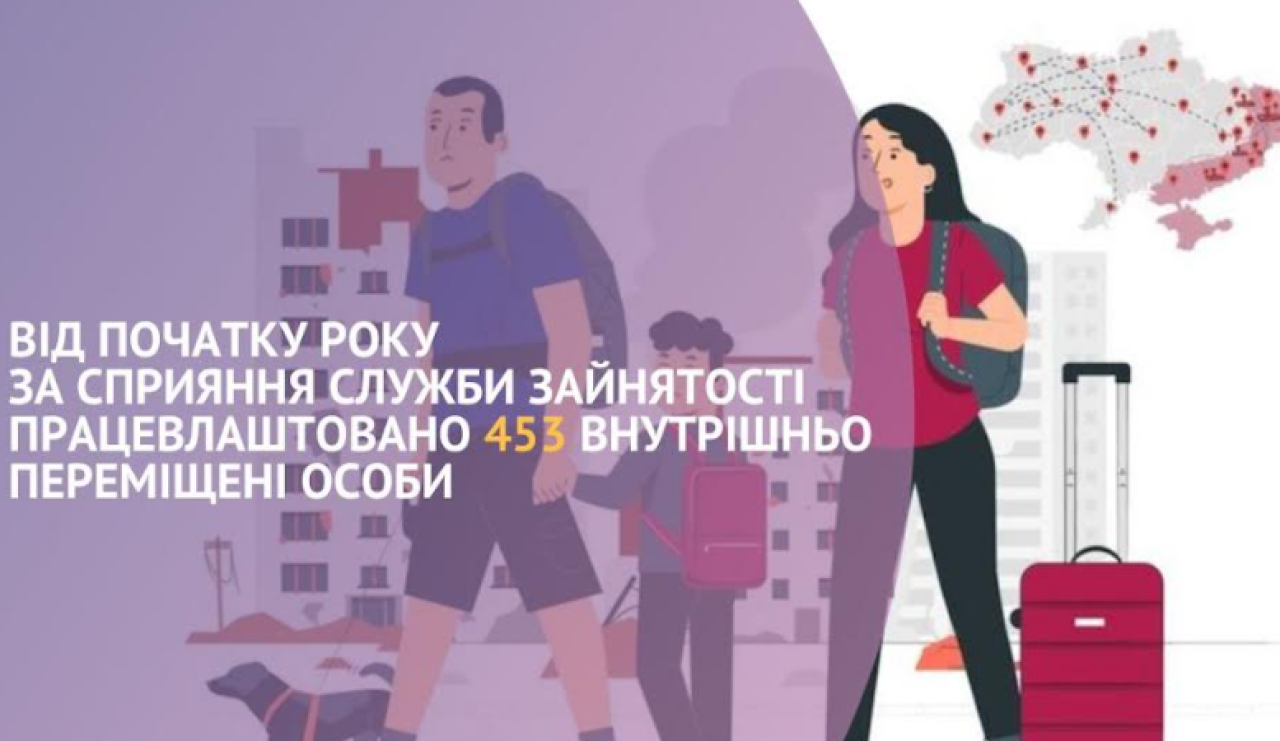 За сприяння служби зайнятості 453 внутрішньо переміщені особи були працевлаштовані.