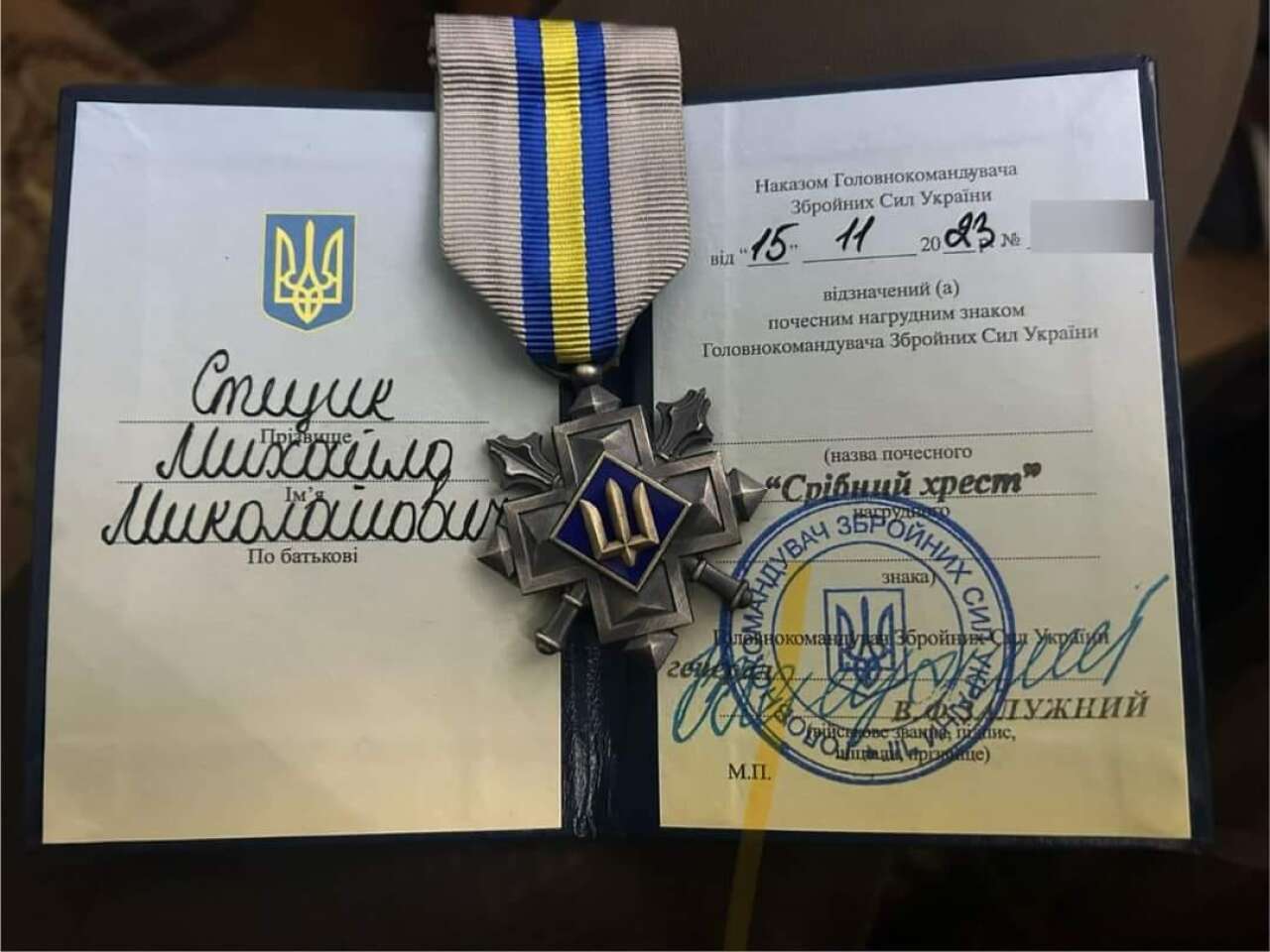 "Щиро вітаємо нашого земляка, молодшого лейтенанта Михайла Стецика, уродженця села Слобідка, із нагородою від Головнокомандувача Збройних Сил України Валерія Залужного «Срібний хрест» !