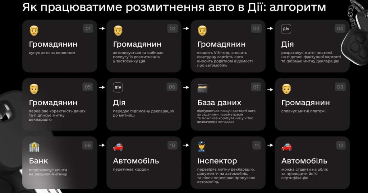 - Весь процес розмитнення буде онлайн, а Дія допоможе заповнювати митну декларацію, підтягнувши інформацію про автівку за VIN-кодом.