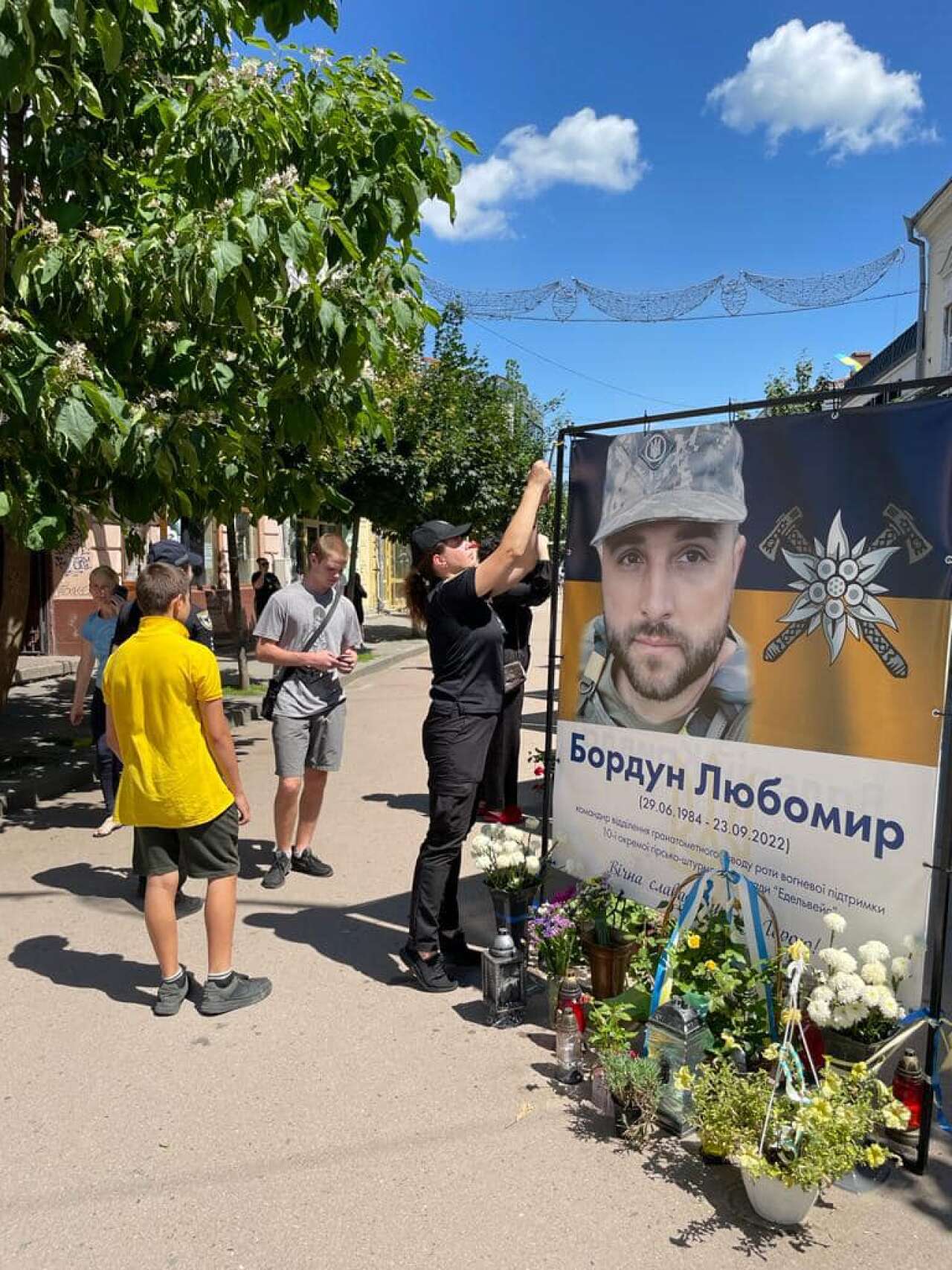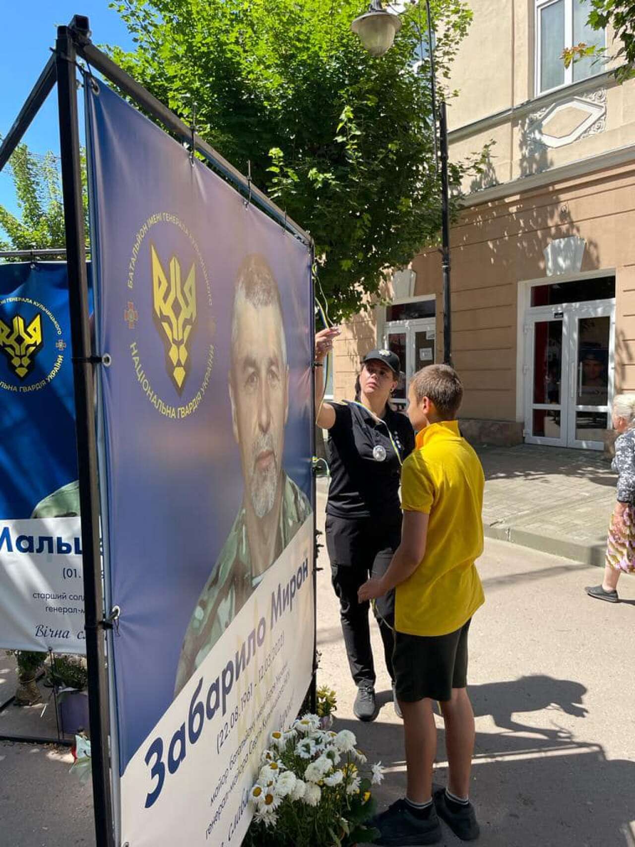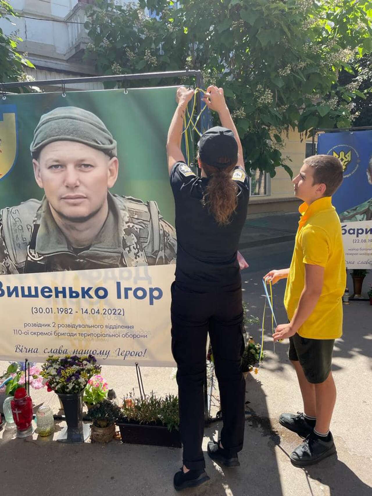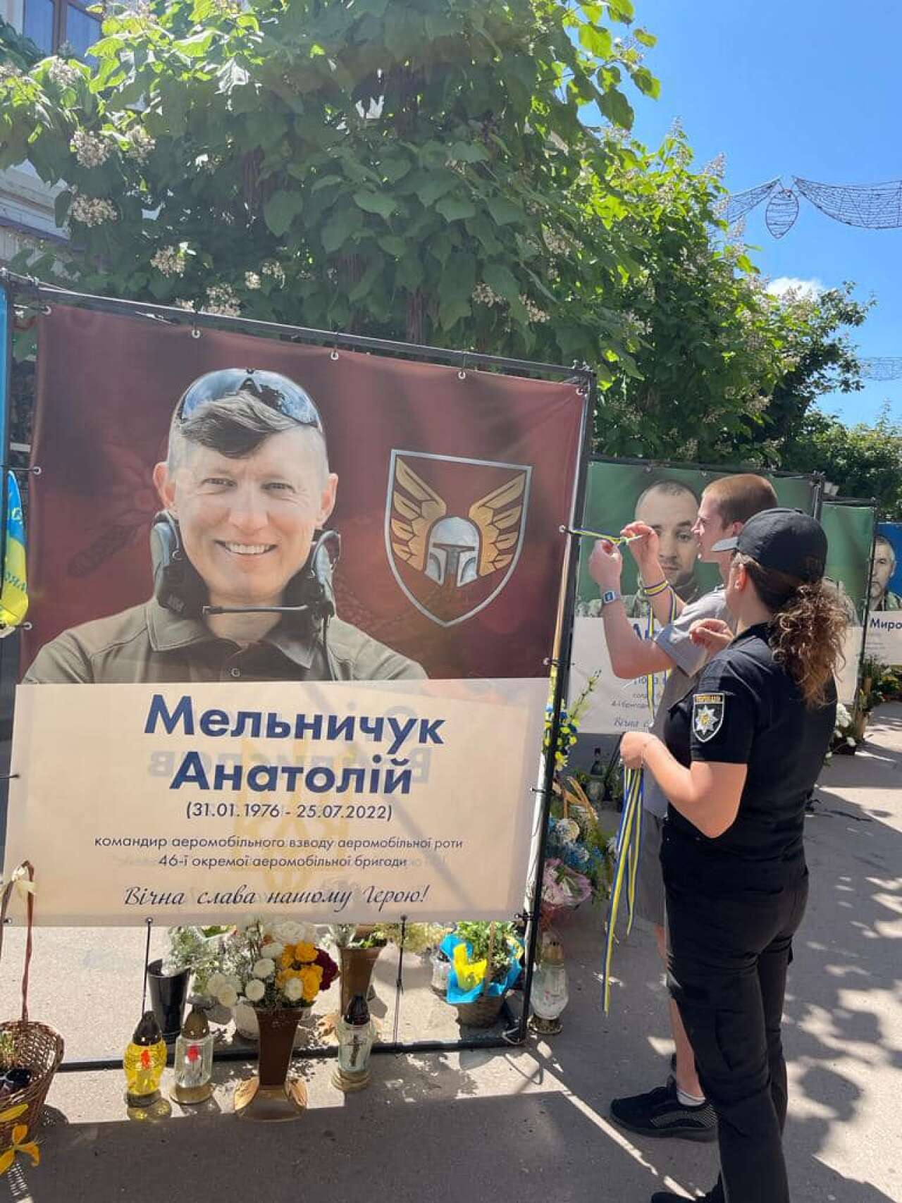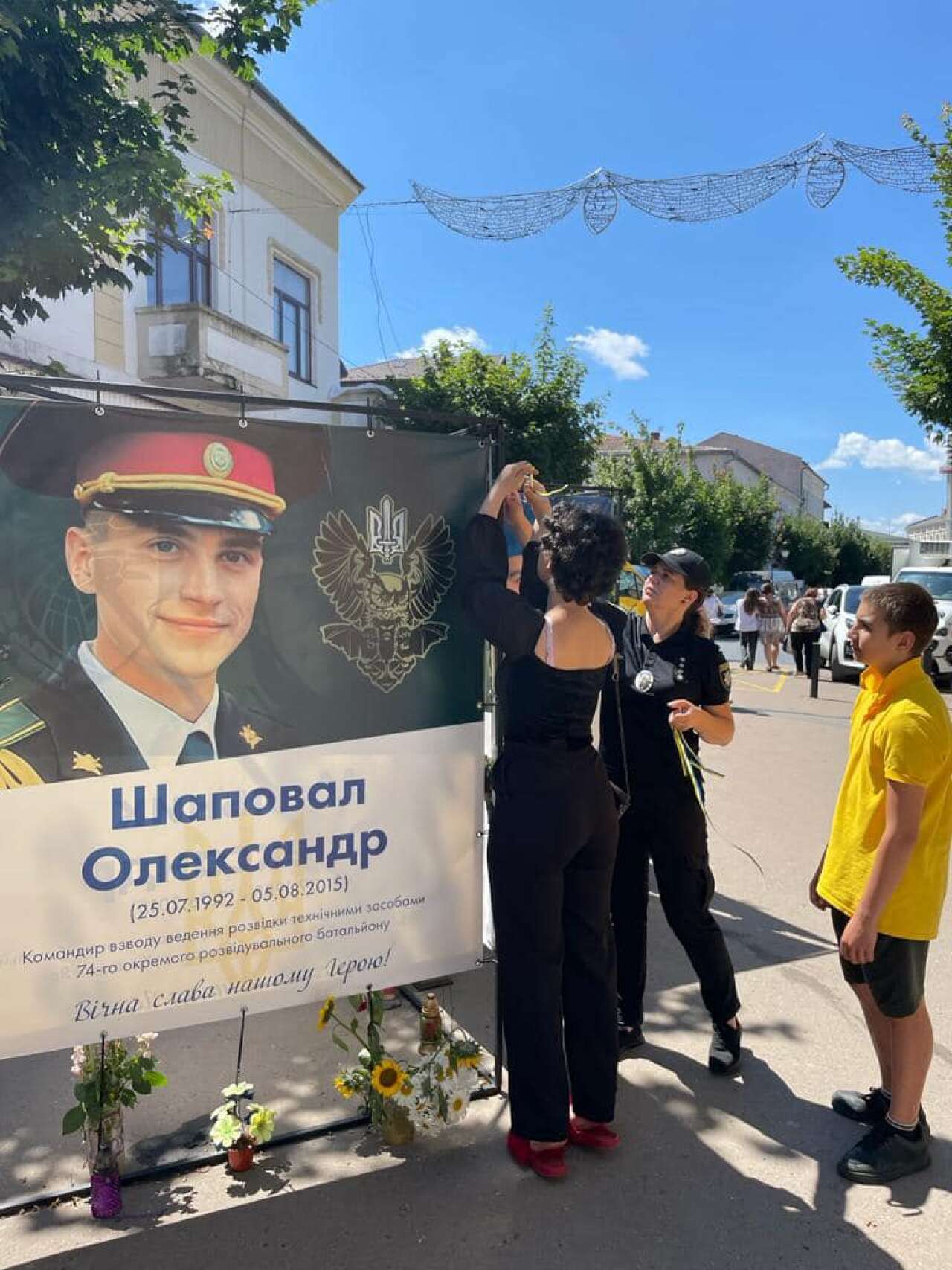 Юнаки та дівчата зав’язали жовто-блакитні стрічки пам’яті про кожного військового та поліцейського, які віддали своє життя за мир, свободу та незалежність нашого народу.