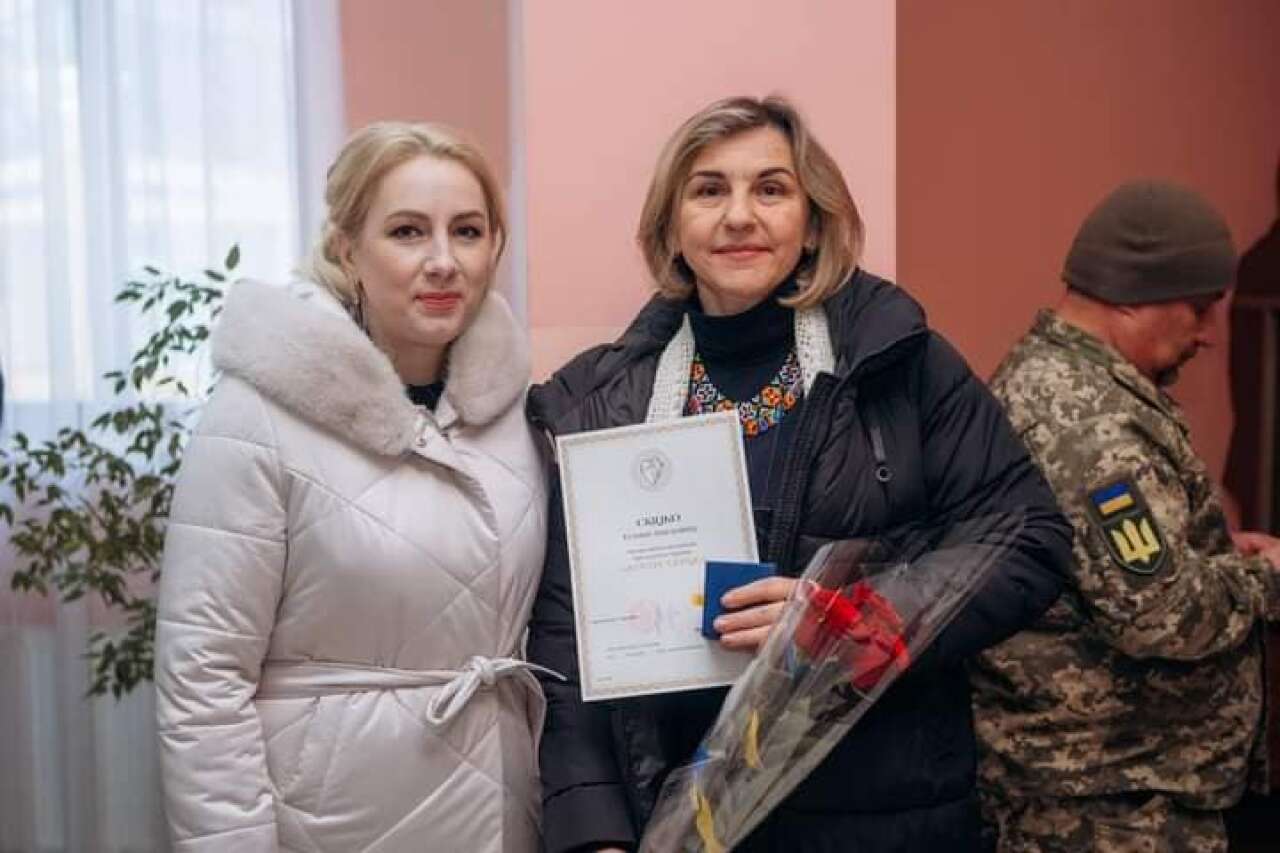 А також з особливою приємність керівниця області вручала президентську відзнаку своїй землячці Тетяні Скіцко - голові громадської організації «Ліга українських жінок», яка всіляко допомагає та підсилює наших захисників.