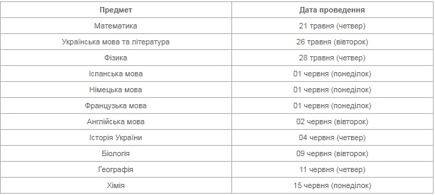 Дати проведення зовнішнього незалежного оцінювання 2020 року: